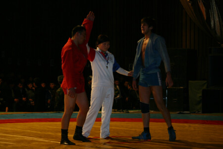 В финальном поединке за 1-е место в весовой категории 100+ кг. встретились 2 брата - Фёдор и Александр Емельяненко. Бой закончился на 7-ой секунде победой Фёдора!Улан Эралиев - кыргызстанский самбист. Броски вертолетиком